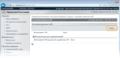 Шифрованную связь по протоколу TLS можно также включать и отключать из меню настройки на панели управления. Настройки удал. ИП
