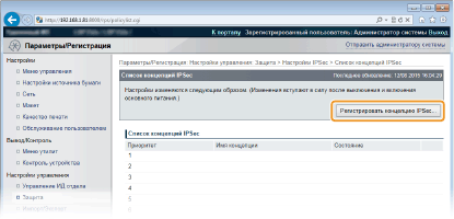 Перед настройкой параметров связи IPSecПроверьте параметры IPSec в операционной системе, с которой аппарат будет обмениваться данными. При неправильном сочетании настроек операционной системы и аппарата связь IPSec невозможна.