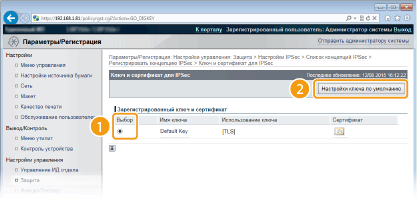 Выберите пару ключей, которую требуется использовать, и нажмите [Настройки ключа по умолчанию].