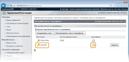 Щелкните [Имя ключа] или [Сертификат] для сертификата, подлежащего регистрации.