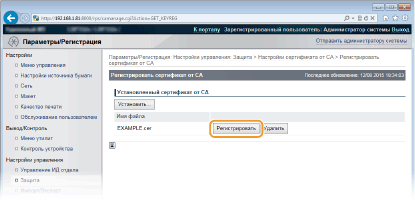 Щелкните [Зарегистрировать] справа от сертификата СА, который вы хотите зарегистрировать.