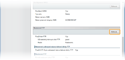Klikněte na tlačítko [Editovat] v části [Nastavení FTP].