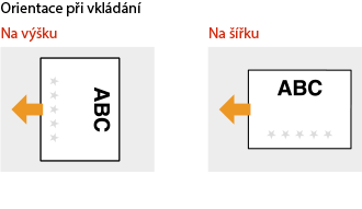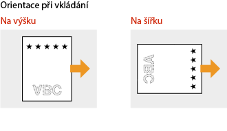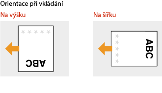 Tato část popisuje způsob vložení předtištěného papíru správnou stranou nahoru a ve správné orientaci. Obecný postup vkládání papíru do zásuvky na papír nebo do víceúčelové přihrádky naleznete dále.