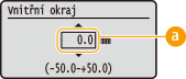 Můžete vybrat <Uprav. polohu tisku> v části <Uživatelská údržba> pro jemné zadání pozice tisku pro každý zdroj papíru. Rozsah dostupných hodnot přesahu je od -5,0 až +5,0 mm ve svislém směru a od -2,25 až +2,25 mm ve vodorovném směru. Nastavení pozice tisku