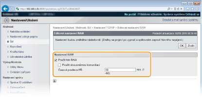 Pokud pro tisk používáte RAW, zaškrtněte příslušné pole. Když ho nepoužíváte, zaškrtnutí zrušte.