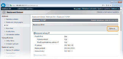 Klikněte na tlačítko [Editovat] v části [Nastavení IPv4].