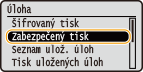 vyberte možnost <Zabezpečený tisk> a stiskněte tlačítko