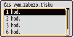 Vyberte možnost <Čas vym.zabezp.tisku> a stiskněte tlačítko