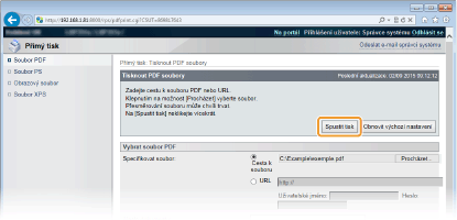 Můžete vytisknout soubor z webového prohlížeče (vzdálené uživatelské rozhraní), aniž byste soubor otvírali. Navíc můžete tisknout také soubor PDF přímo z webu, a to po zadání URL.