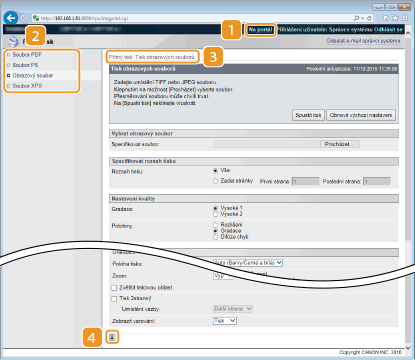 Pokud se přihlásíte v režimu běžného uživatele, možnosti [Utility Menu], [Ovládání zařízení], [Správa ID oddělení] a [Import/Export] se nezobrazí.