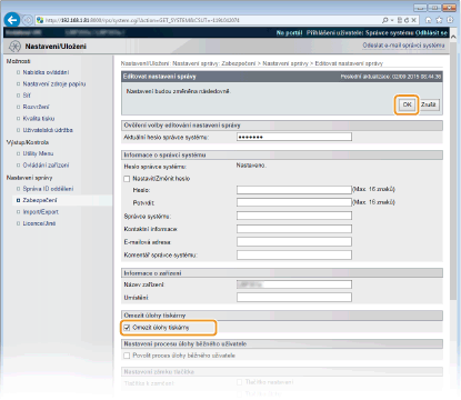 I když se tiskové operace omezí, lze vytisknout seznamy nastavení a hlášení. Tisk hlášení a seznamů