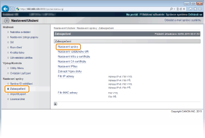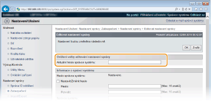 Zadejte heslo správce systému do pole [Aktuální heslo správce systému].