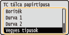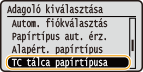 gombokkal válassza ki a <TC tálca papírmérete> lehetőséget, és nyomja meg az