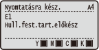 A használtfesték-tároló állapotát a <Fogyóeszközadatok> menüpont <Hull.fest.tart.állap> elemében ellenőrizheti. Amennyiben üzenet szólítja fel arra, hogy gondoskodjon csere használtfesték-tárolóról, akkor nagyobb nyomtatási feladat előtt ajánlatos ellenőrizni a tároló állapotát.