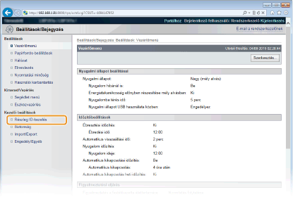 Kattintson a [Beállítások/Bejegyzés] gombra.