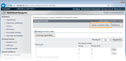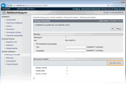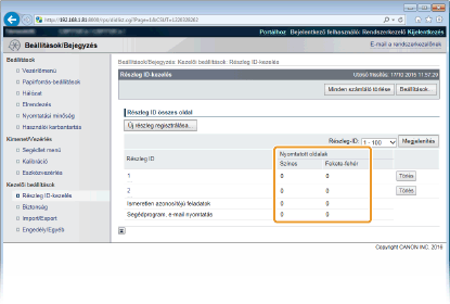 Ha az egyes részlegek oldalszámlálását vissza kívánja állítani nullára, akkor kattintson a [Részleg ID] alatt található szöveges hivatkozásra, majd kattintson a [Számláló törlése]  [OK] lehetőségekre.