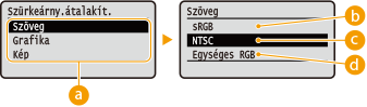 Ez a beállítás akkor használható, ha a <Nyomtatási minőség> pont <Színesség mód> (Színesség mód) eleme <Fekete> értékre van állítva.