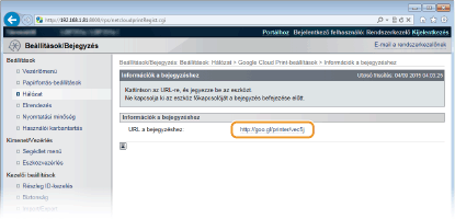 A készülék regisztrálása a Google Cloud Print szolgáltatásban