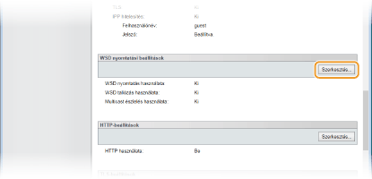 A WSD protokollon keresztüli nyomtatáshoz jelölje be a jelölőnégyzetet. Ha nem használ WSD-nyomtatást, akkor törölje a jelet a jelölőnégyzetből.
