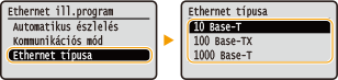 Válassza ki az <Ethernet típusa> beállítást    Válassza ki az Ethernet típusát
