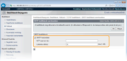 Jelölje be a [SNTP használata] jelölőnégyzetet, és adja meg a szükséges beállításokat.