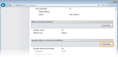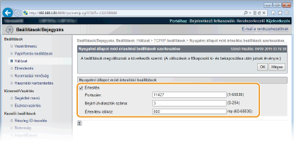 A jelölőnégyzet bejelölésével értesítheti az eszközfelügyeleti szoftvert a készülék üzemállapotáról. Ha az [Értesítés] jelölőnégyzet be van jelölve, akkor a készülék alvó üzemmódban várhatóan elkerüli a felesleges kommunikációt, és csökkenti a teljes energiafogyasztást. [Portszám]