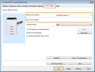 A PCL6 nyomtató-illesztőprogramot, valamint az UFR II nyomtató-illesztőprogramot is használhatja. Az elérhető nyomtatási beállítások a használt nyomtató-illesztőprogramtól függnek. A további tudnivalókért kattintson az egyes nyomtató-illesztőprogramok [Help] (Súgó) menüpontjára.