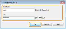 Adja meg a [User Name] (Felhasználónév) és a [PIN] értékét, majd kattintson az [OK] gombra.