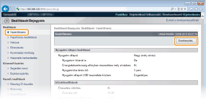 Kattintson a [Beállítások/Bejegyzés] gombra.