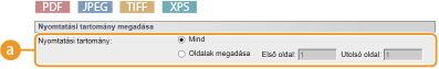 A nyomtatandó oldaltartomány megadásához válassza ezt a lehetőséget. JPEG fájlok esetén nem elérhető.