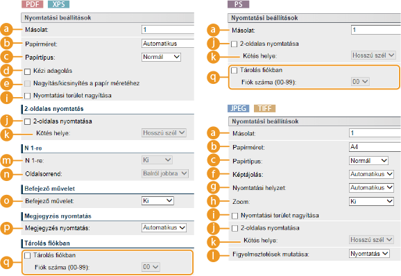 XPS fájlok nyomtatási beállításainak megadása eseténTörölje a [Nyomtatási címke előnyben] jelölőnégyzet kijelölését. Ha a jelölőnégyzet bejelölve marad, akkor bizonyos beállítások nem használhatók.