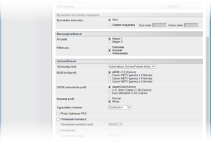 A Euro Standard elnevezésű profil használata. A nyomtatás az Európában használt nyomtatási szabványokkal közel megegyező színeket eredményez.