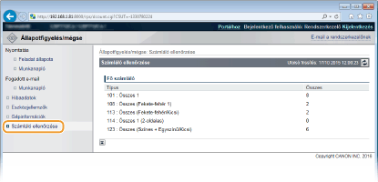 A beállítási listaként és jelentésként kinyomtatott dokumentumok közül legfeljebb 16 előzménye jelenik meg (behelyezett SD-kártya esetén legfeljebb 128 dokumentum).