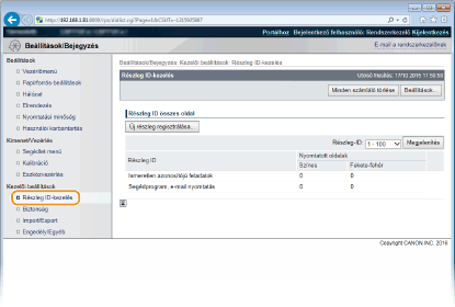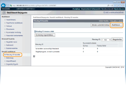 Kattintson a [Részleg ID-kezelés] elemre, és jegyezze be vagy szerkessze a részlegazonosítókat.