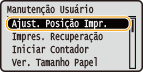 Se um documento é impresso fora de centro ou fora da faixa de impressão, ajuste a posição de impressão. Você pode ajustar a posição de impressão para cada fonte de papel.