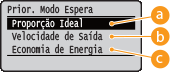 Asteriscos (*)Configurações marcadas com um asterisco (*) não são exibidas de acordo com outras definições ou se houver um cartão SD opcional instalado na máquina.