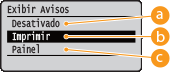 Asteriscos (*)Configurações marcadas com um asterisco (*) não são exibidas de acordo com outras definições ou se houver um cartão SD opcional instalado na máquina.