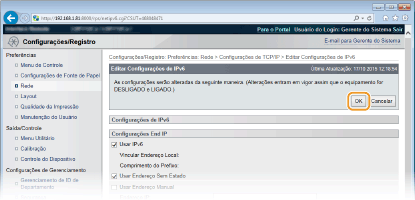 A [Usar IPv6] caixa de seleção deve ser marcada para configurar as definições. Definindo endereços IPv6