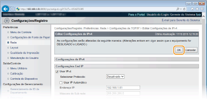 Digite o endereço IP de um servidor DNS. Você também pode definir o endereço IP no painel de operação (Configurações IPv4). [Endereço do Servidor DNS Secundário]