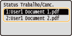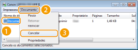 Cancelando da Interface RemotaVocê pode cancelar a impressão a partir da página [Status do Trabalho] na Interface Remota: Verificando o status atual dos documentos impressos