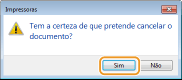 Cancelando a partir de um aplicativoEm alguns aplicativos, uma tela como a mostrada abaixo é exibida. Você pode cancelar a impressão clicando em [Cancelar].