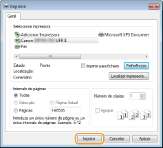 O modo como a caixa de diálogo de impressão é visualizada difere em cada aplicativo. Para obter mais informações, consulte os manuais de instruções do aplicativo que você está usando.