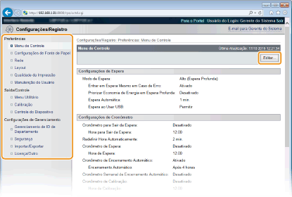 Você pode alterar as mensagens mostradas no quadro de mensagens e o link para a página de suporte que são exibidos na Página de Portal (página principal).