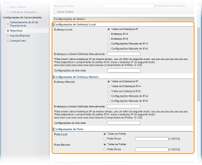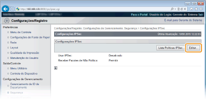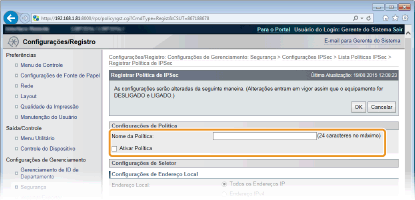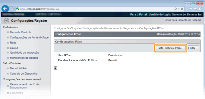 Antes de configurar as definições de comunicação IPSecVerifique as configurações de IPSec no sistema operacional com o qual a máquina irá se comunicar. Uma combinação incorreta de configurações de sistema operacional e configurações da máquina irá desativar a comunicação IPSec.