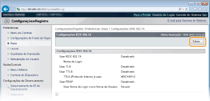 Você também pode ativar ou desativar a autenticação IEEE 802.1X no menu de configuração do painel de operação. IEEE802.1X