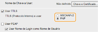 Marque a caixa de seleção [Usar TTLS] ou [Usar PEAP].