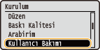 tuşlarını kullanarak <Kullanıcı Bakımı> seçeneğini belirleyin ve