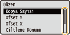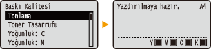 Örneğin ekran ayarlaması ve görüntüleme dili gibi ekranla ilgili çeşitli ayarları, işletim panelindeki Kumanda Menüsü> öğesini kullanarak belirleyebilirsiniz. Kumanda Menüsü