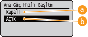 Bir hızlı KAPAT gerçekleştirdikten sonra gücü hemen AÇARSANIZ, makinenin çalıştırılmaya başlatılması biraz zaman alabilir.