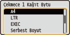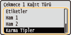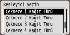 <Çekmece 1 Kağıt Türü> - <Çekmece 4 Kağıt Türü> öğelerinden birini seçin ve